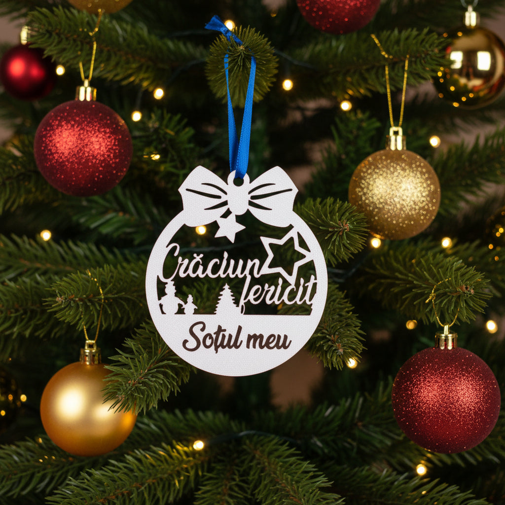 Transformă sărbătorile într-un moment memorabil cu globulețul din lemn „Crăciun Fericit – Soțul meu”, un ornament care exprimă apreciere, afecțiune și legătura voastră unică. Gravura atent realizată și lemnul natural oferă un aspect autentic și elegant, perfect pentru bradul de Crăciun.