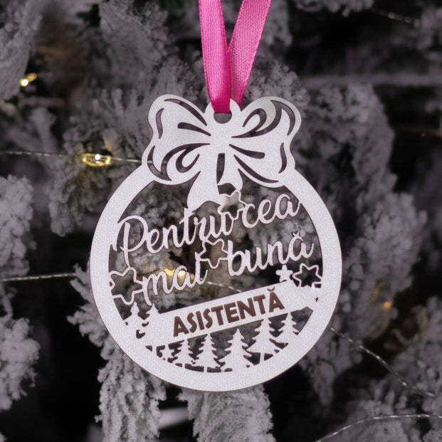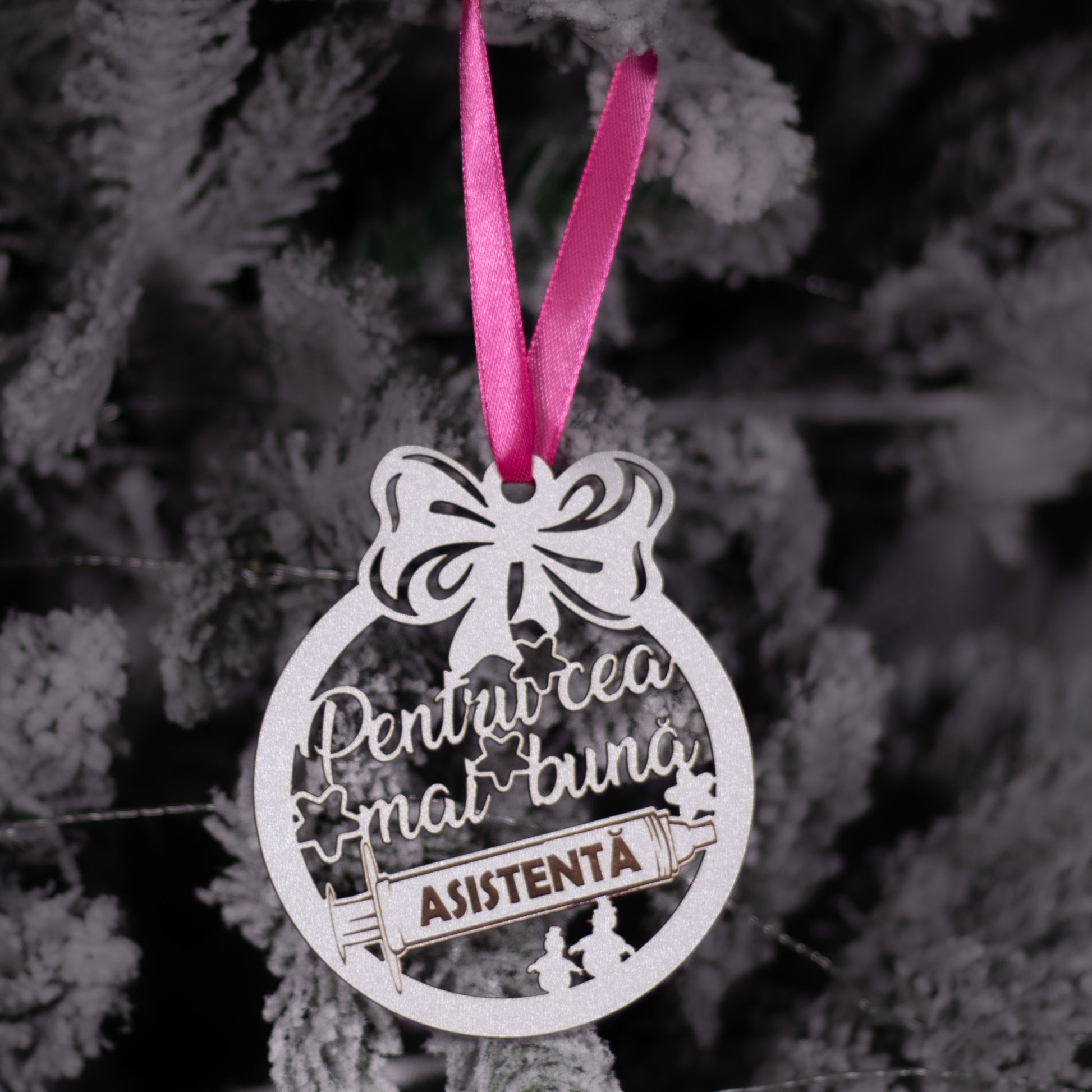 Exprimă recunoștința și aprecierea în acest Crăciun cu globulețul din lemn „Pentru asistentă”, un ornament elegant și personalizat care transmite mulțumire pentru dedicarea, grija și profesionalismul de care dă dovadă zi de zi. Gravura delicată și lemnul natural îi oferă un aspect autentic și rafinat, perfect pentru bradul de Crăciun.