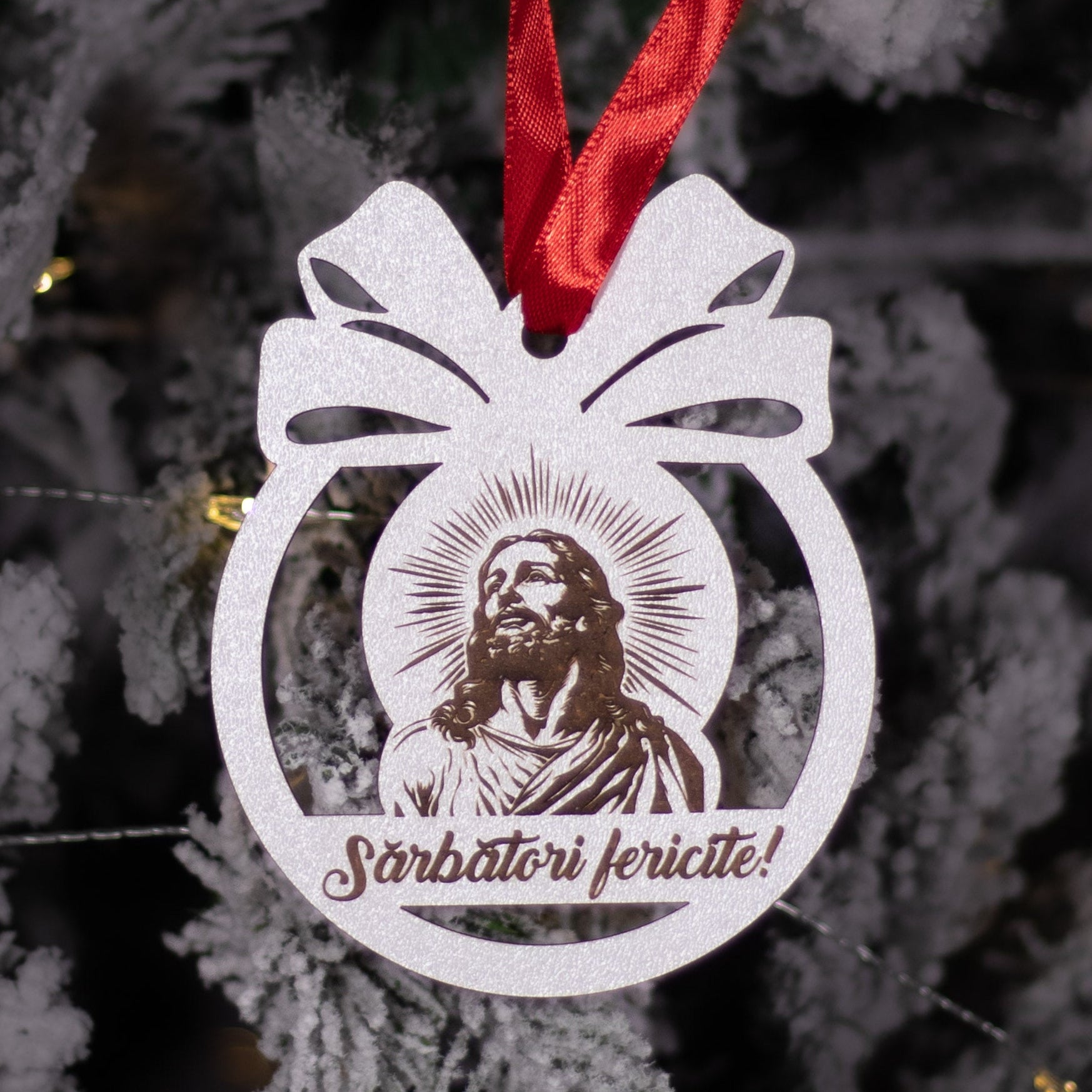 Adaugă un strop de spiritualitate și eleganță bradului tău cu globulețul din lemn „Iisus”, un ornament care simbolizează credința și liniștea sărbătorilor de Crăciun. Gravura atent realizată pe lemn natural oferă un aspect autentic și clasic, perfect pentru un decor festiv plin de semnificație.