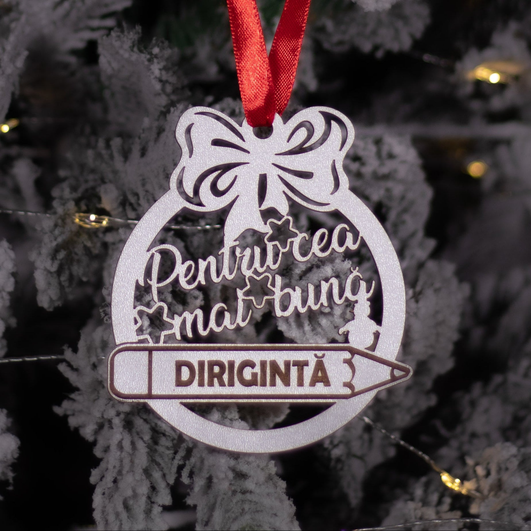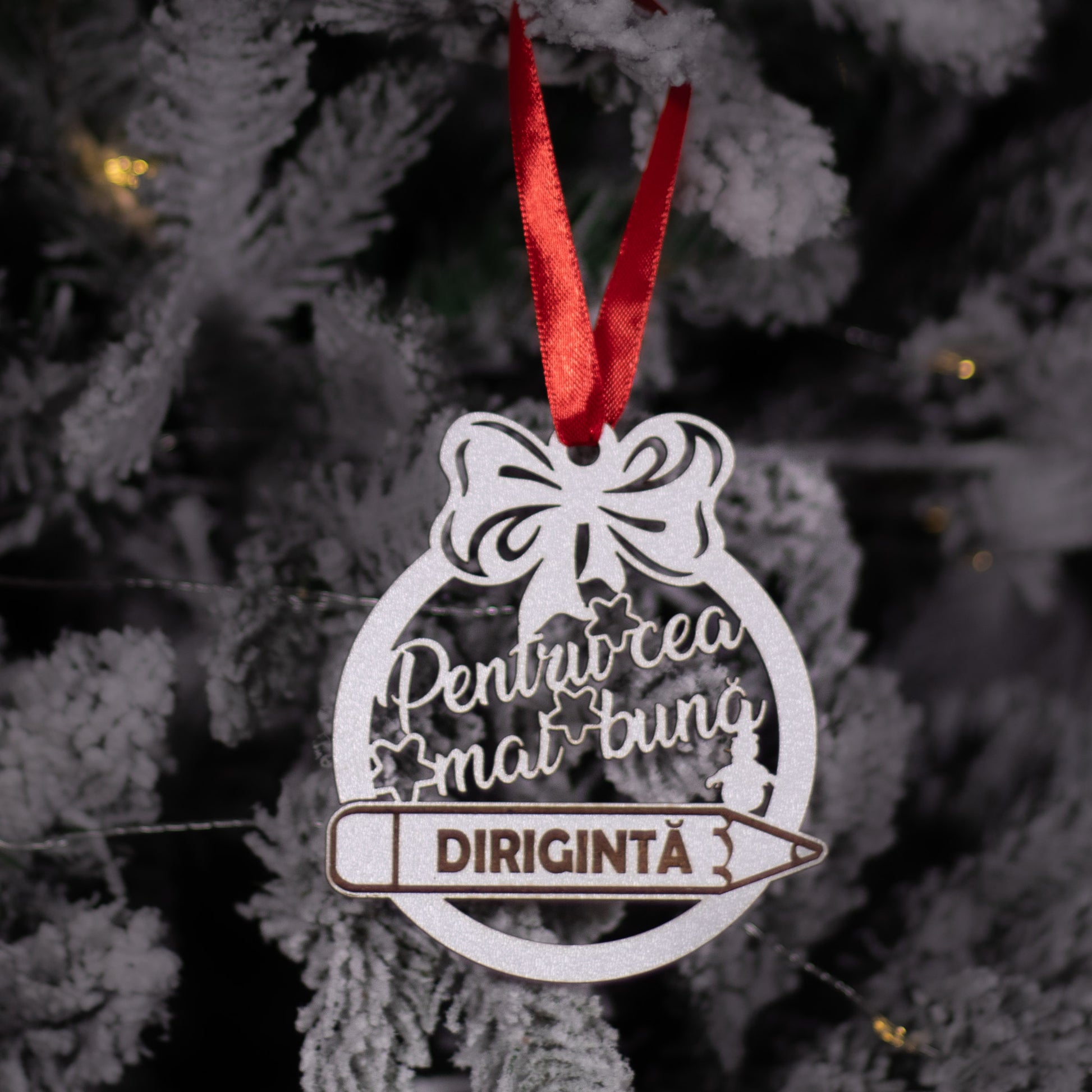 Arată aprecierea și respectul în acest Crăciun cu globulețul din lemn „Pentru dirigintă”, un ornament elegant și personalizat care transmite recunoștință pentru îndrumarea, dedicarea și grija oferite elevilor. Gravura delicată și lemnul natural îi conferă un aspect autentic și rafinat, ideal pentru bradul de Crăciun.