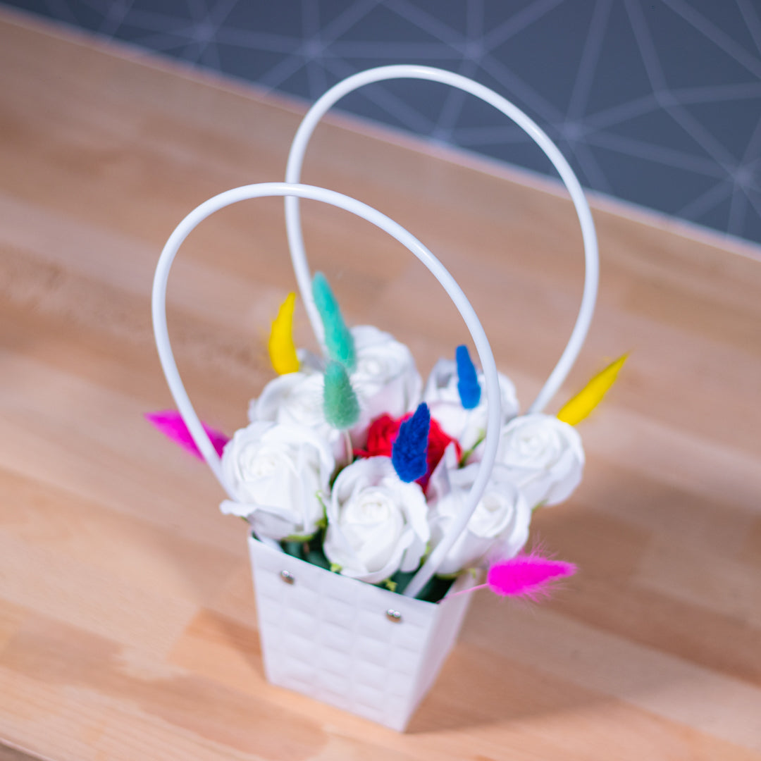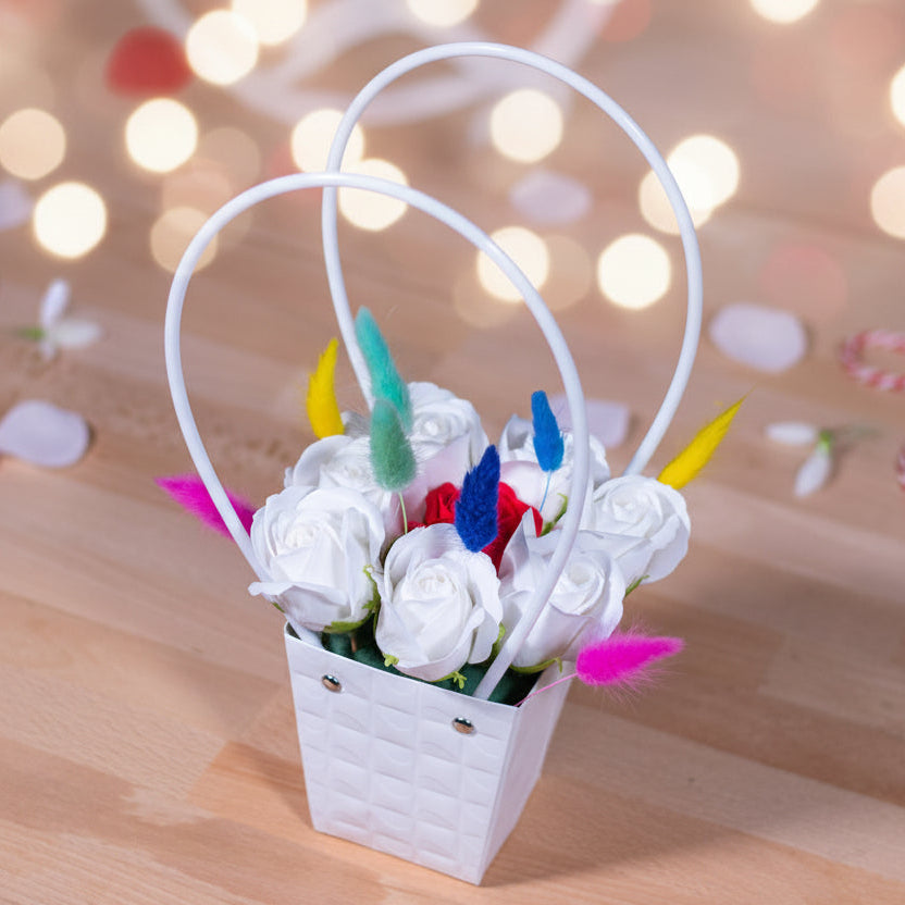 Surprinde primăvara cu un cadou elegant și parfumat! Coșulețul cu trandafiri din săpun este alegerea perfectă pentru un mărțișor deosebit, care îmbină frumusețea florilor cu delicatețea unui parfum plăcut. Un aranjament decorativ rafinat, ideal pentru a aduce zâmbete și a transmite cele mai frumoase gânduri.