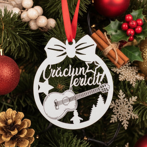 Transformă sărbătorile într-un moment plin de muzică și stil cu globulețul din lemn cu chitară, un ornament elegant care celebrează pasiunea pentru muzică și talentul artistic. Realizat din lemn natural și gravat cu grijă, acest globuleț adaugă un farmec autentic și festiv bradului de Crăciun.