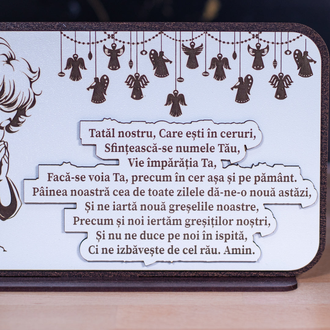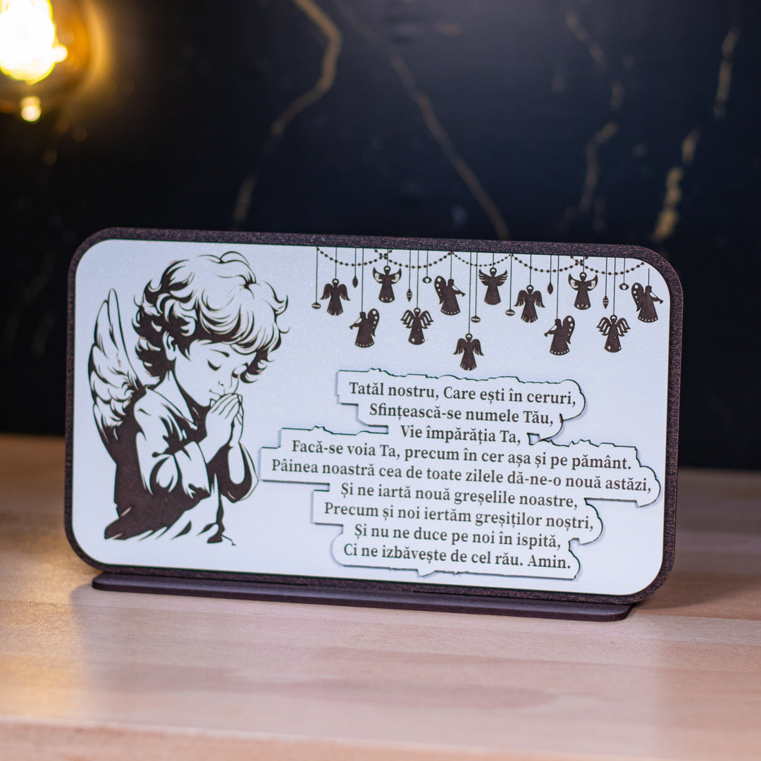 ✔️ Design: Plachetă decorativă cu rugăciunea „Tatăl Nostru” gravată cu precizie