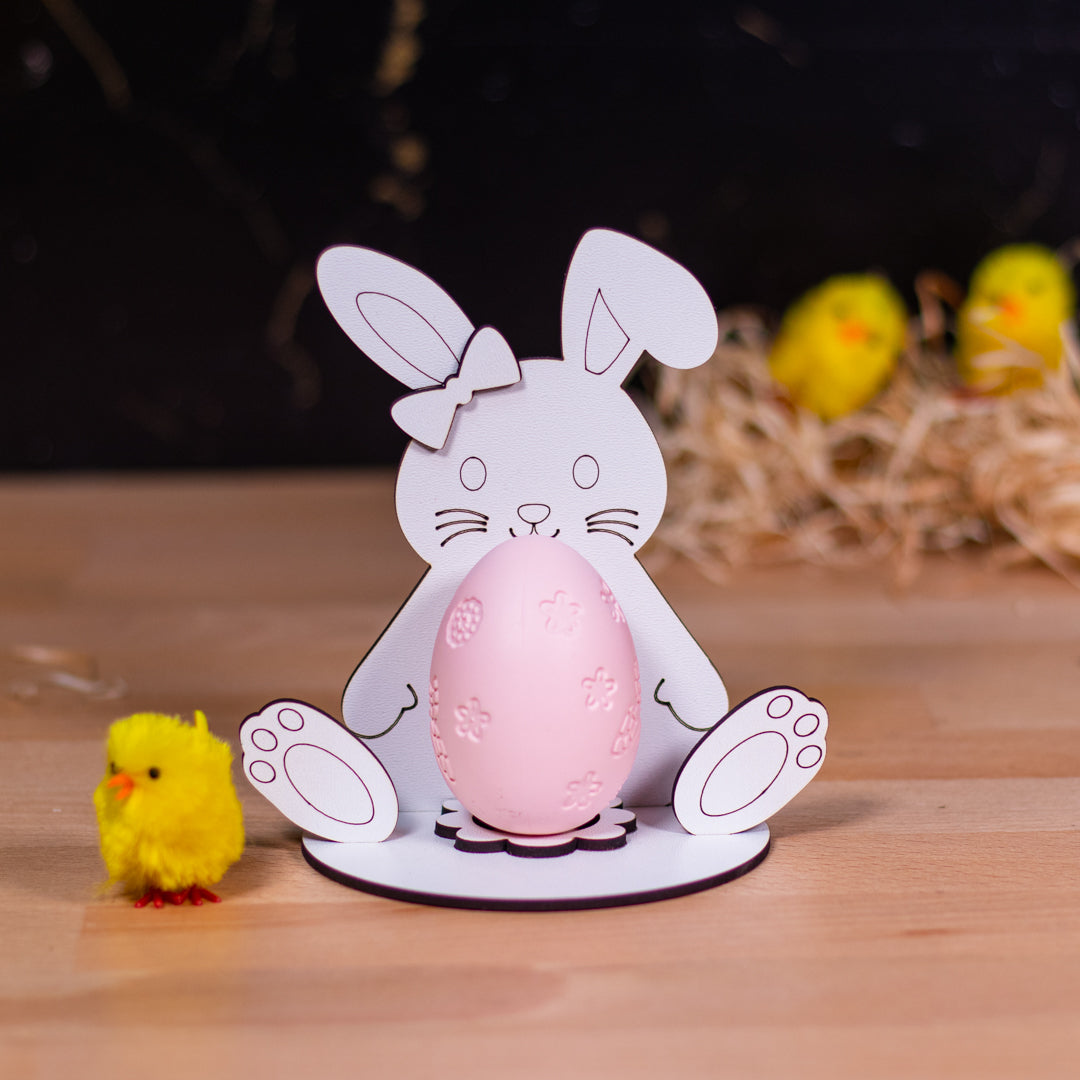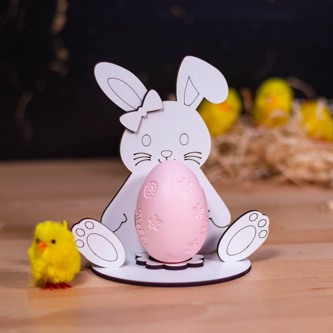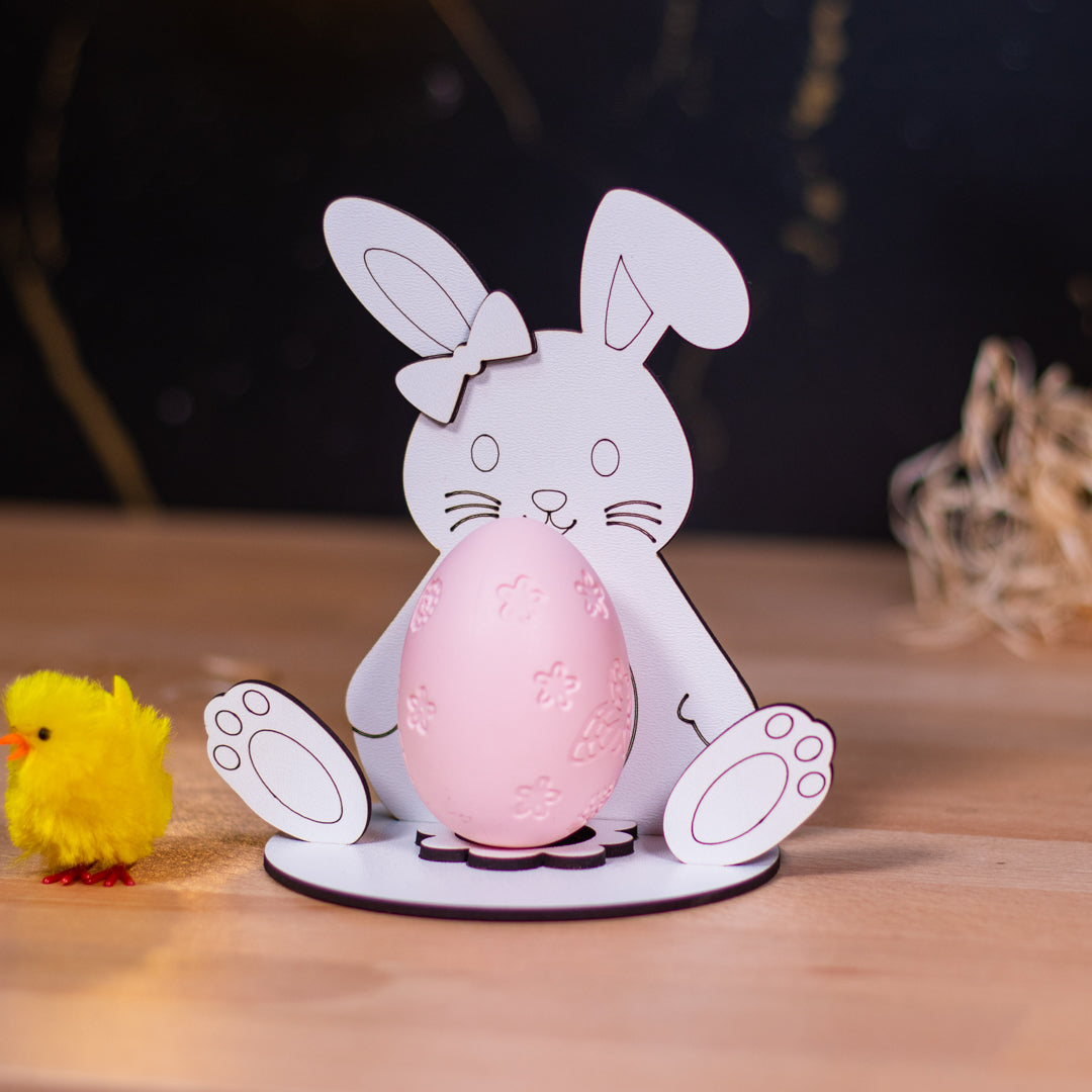 Alege Suportul pentru ou de Paște Iepuraș – Model 4 pentru a adăuga un plus de stil și personalitate decorului tău de sărbătoare! 🐰🥚🌷