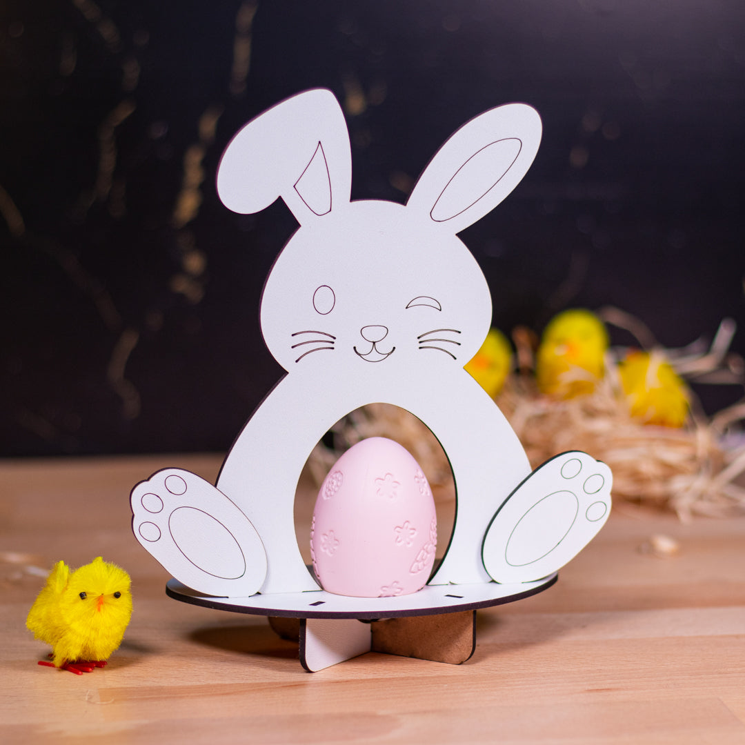 Alege Suportul pentru ou de Paște Iepuraș – Model 6 pentru a adăuga un plus de stil și personalitate decorului tău de sărbătoare! 🐰🥚🌷
